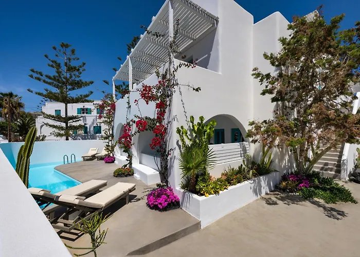 Das Hotel befindet sich auf einem Berg und ist zudem in 6 km Entfernung vom Museum des vorgeschichtlichen Thira. Alt-Thera liegt auch in circa 10 Autominuten Entfernung von diesem Aparthotel.